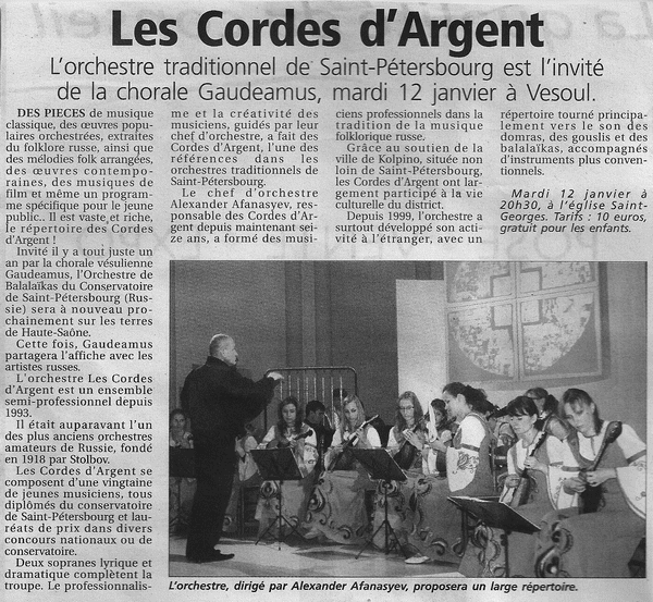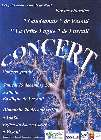 Article de l'Est Républicain 19 et 20 décembre 2009 - Concert de NoëlA la Basilique de Luxeuil en compagnie de "La Petite Fugue". Cette nuit la température descend jusqu'à -20° et ne dépasse pas 7° dans la Basilique, de quoi rendre les voix cristalines !