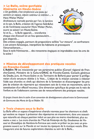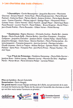 Premier trimestre - Formation des choristesEn ce début d'année, une formation conduite par Yves Martin à lieu les mardis 15 et 29 septembre, 20 octobre, 17 novembre, 8 et 15 décembre. 6 octobre 2009 - Réunion du Bureau |